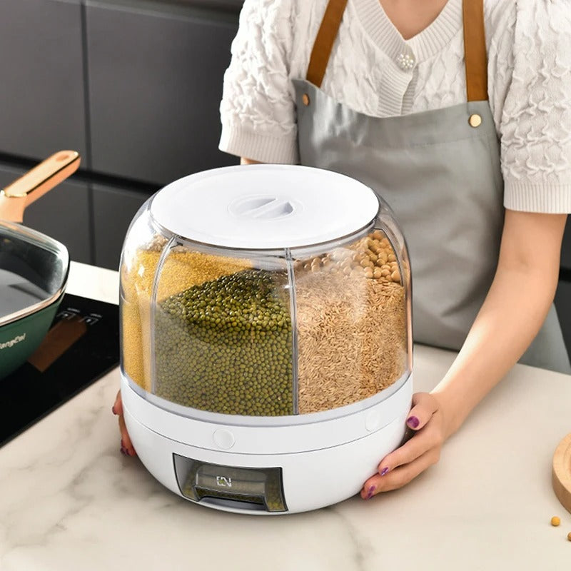- Rotating Base: Features a smooth 360° rotating design, allowing you to access rice, grains, or other stored ingredients from any angle without moving the entire container.