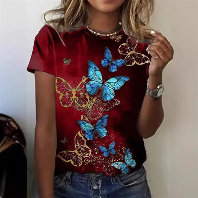 Elevate your everyday style with the Elegant Butterfly Print Tee — a graceful blend of charm and comfort. This tee features a beautifully detailed butterfly print that adds a touch of nature-inspired elegance to your casual wardrobe. Designed with a relaxed fit and soft, breathable fabric, it ensures comfort all day long while keeping your look effortlessly stylish.