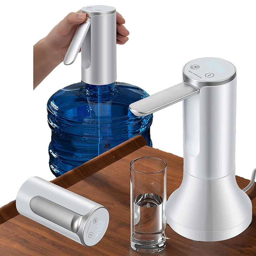 The Foldable Electric Water Dispenser Pump is a portable, space-saving solution for dispensing water from large bottles (5-gallon/19L) without lifting or tilting. Its compact, collapsible design makes it ideal for homes, offices, or travel. Powered via USB rechargeable battery or direct USB connection, it features a high-flow pump, auto-stop function, and food-grade silicone tubing for safe, hygienic water dispensing.